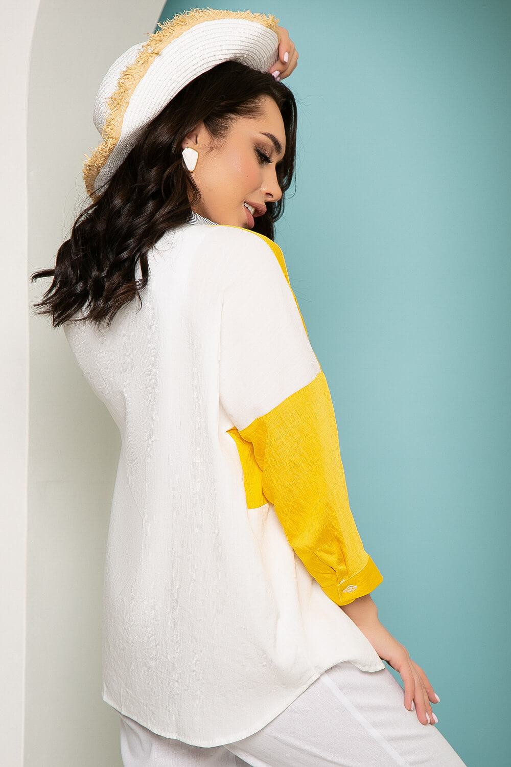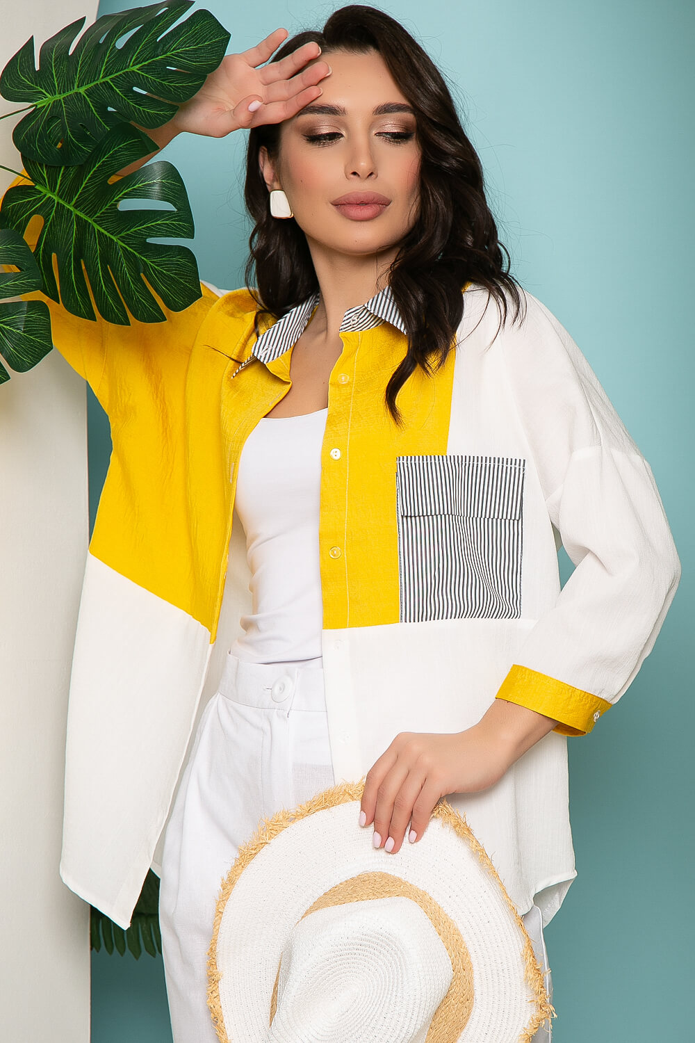 - Цвет: белый, горчица. Принт: полоска (кармашек, воротник);