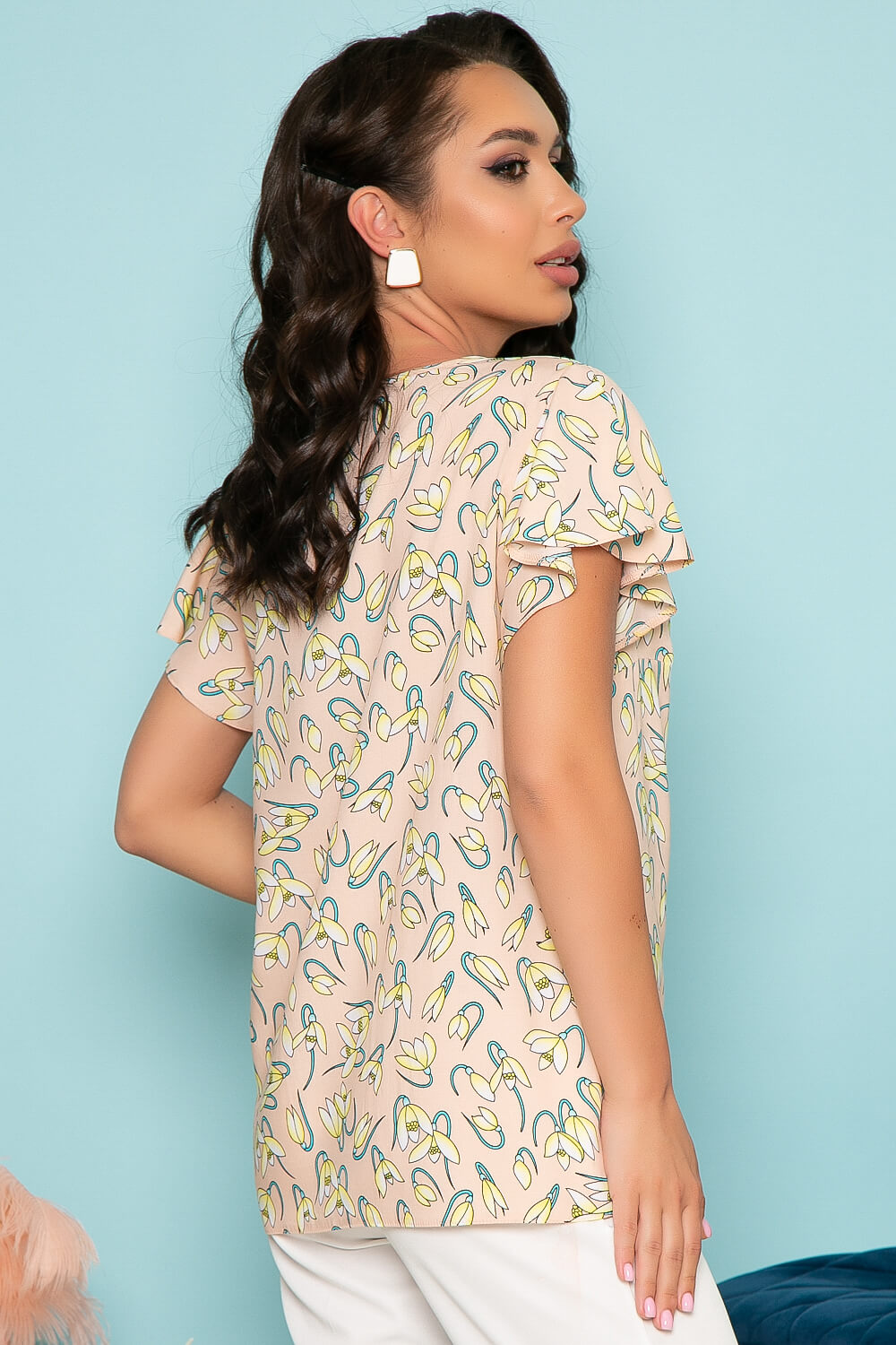 Женственная блуза с рукавами-крылышками. Свободный крой, V-образный вырез горловины дополняет нежный образ. Блуза будет гармонично сочетаться, как с деловым образом, так и с повседневным.