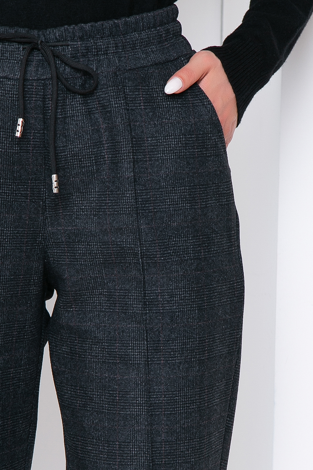- Незаменимые для гардероба базовые брюки из плотного трикотажа в клетку;