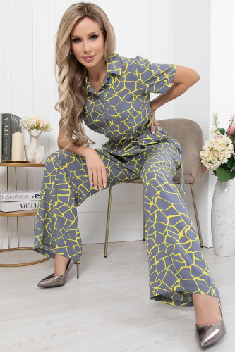 Комбинезон из лёгкой ткани идеально подойдёт для летнего расслабленного образа. Свободный крой не сковывает движений и дарит комфорт. Рукав укороченный со спущенным плечевым швом.
