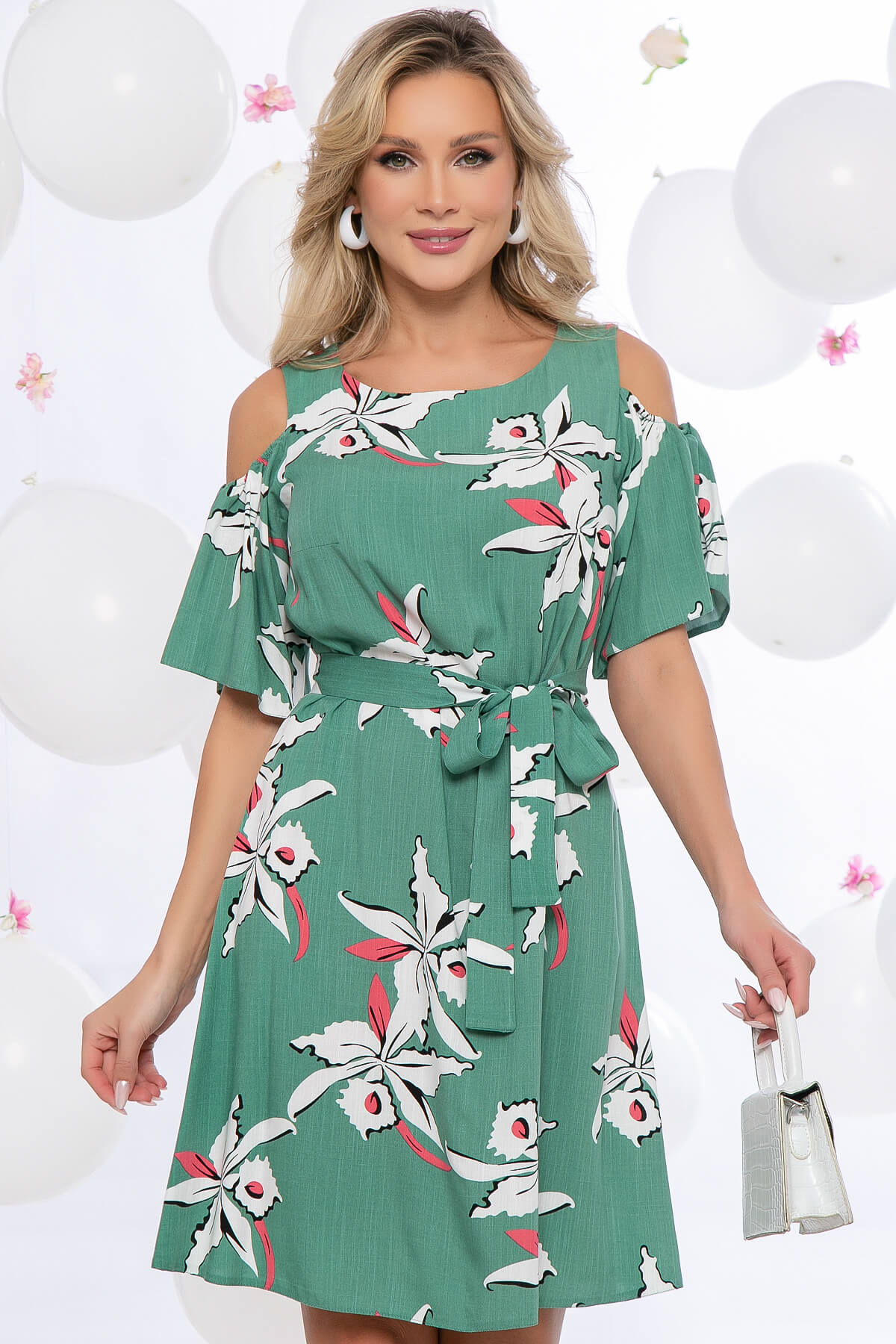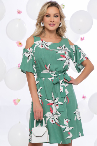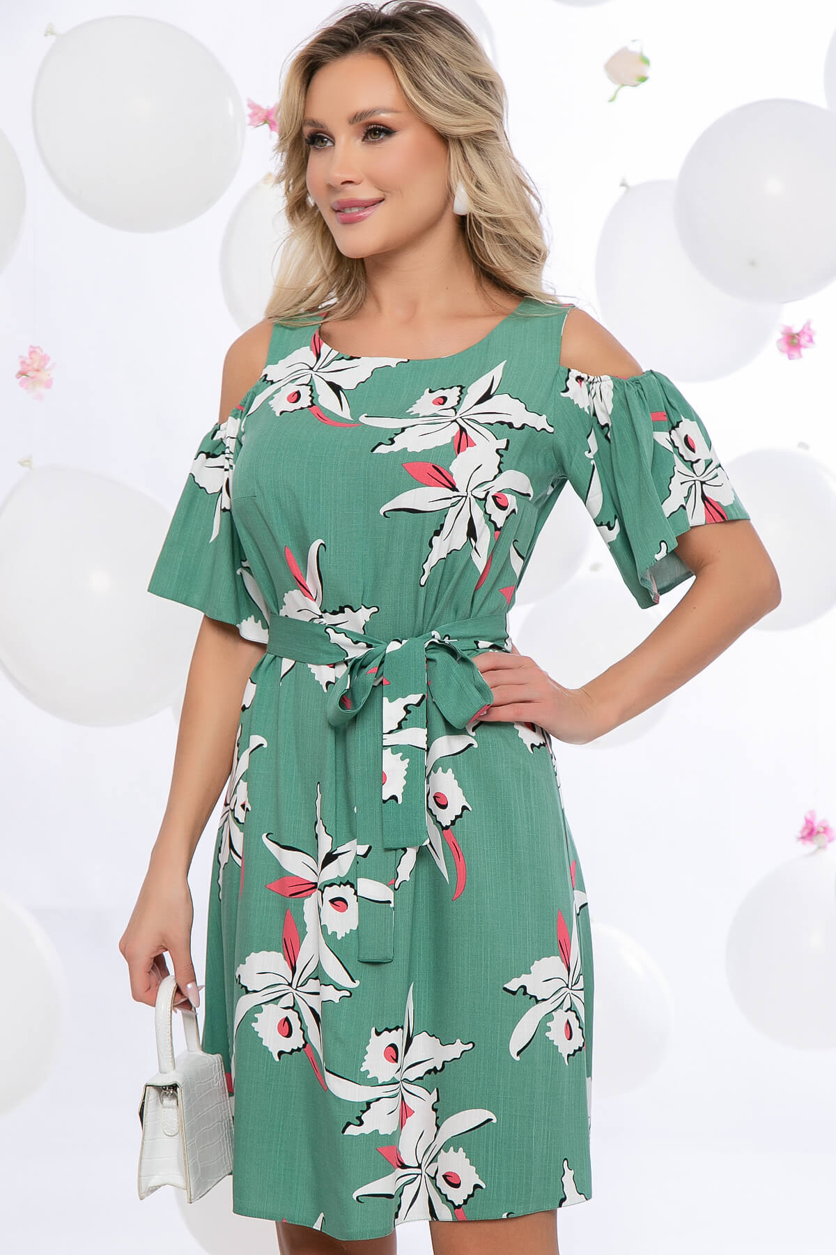 Шикарное платье с акцентными рукавами не оставит без внимания окружающих. Вырезы на плечах придадут утонченность и добавят образу кокетства. Платье можно носить, как с поясом, подчеркивая всю красоту фигуры, так и без - тогда образ получится более расслабленный.