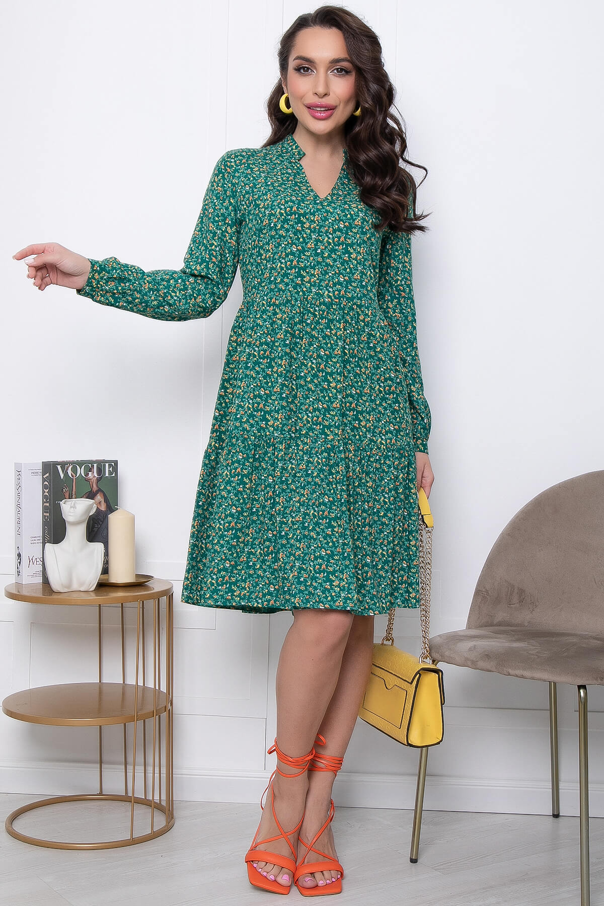 Платье из штапеля с завышенной линией талии и пышной юбкой. Такой фасон с лёкостью скроет недостатки фигуры. Пышная юбка состоит из ниспадающих воланов, складки оттеняются мягким переливом ткани. Платье отлично садится по фигуре и подойдет на прогулку, свидание и даже на торжественное мероприятие!