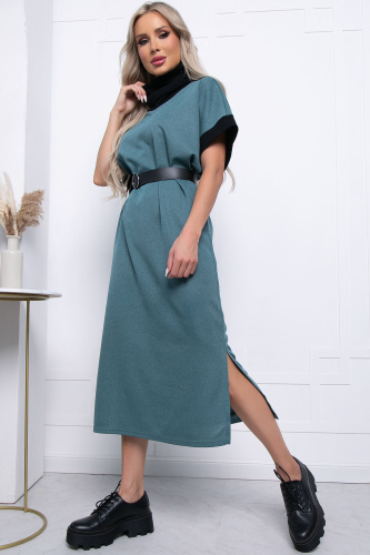 Платье из мягкого трикотажа в сдержанном серо-голубом оттенке прекрасно подойдёт для модных и при этом комфортных повседневных образов. Благодаря простой форме такое платье прекрасно сочетается со многими вещами из женского гардероба. В прохладную пору можно надеть облегающий джемпер в качестве нижнего слоя. Мягкий и объёмный ворот создаст дополнительный комфорт. В комплект входит пояс чёрного из экокожи.