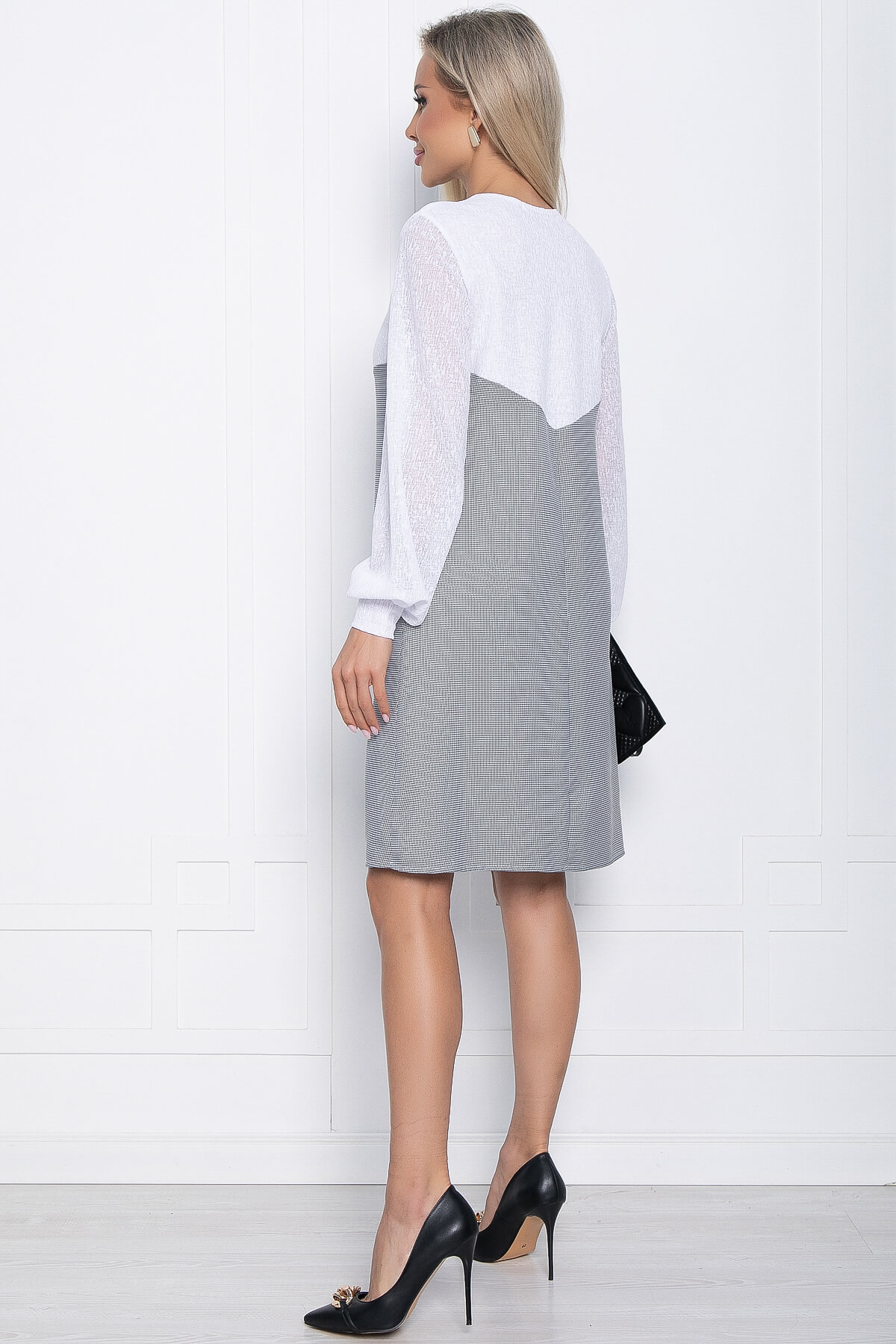 Платье для комфортного повседневного образа и роскошного офисного аутфита. Такие вещи очень универсальны и всегда выручают в ситуации, когда не знаешь, что надеть. Принт "гусиная лапка" универсален и всегда выглядит стильно! Рукава длинные, втачные, по низу манжет. В боковых швах есть карманы. Низ изделия из костюмной ткани, кокетка и рукава выполнены из трикотажа.