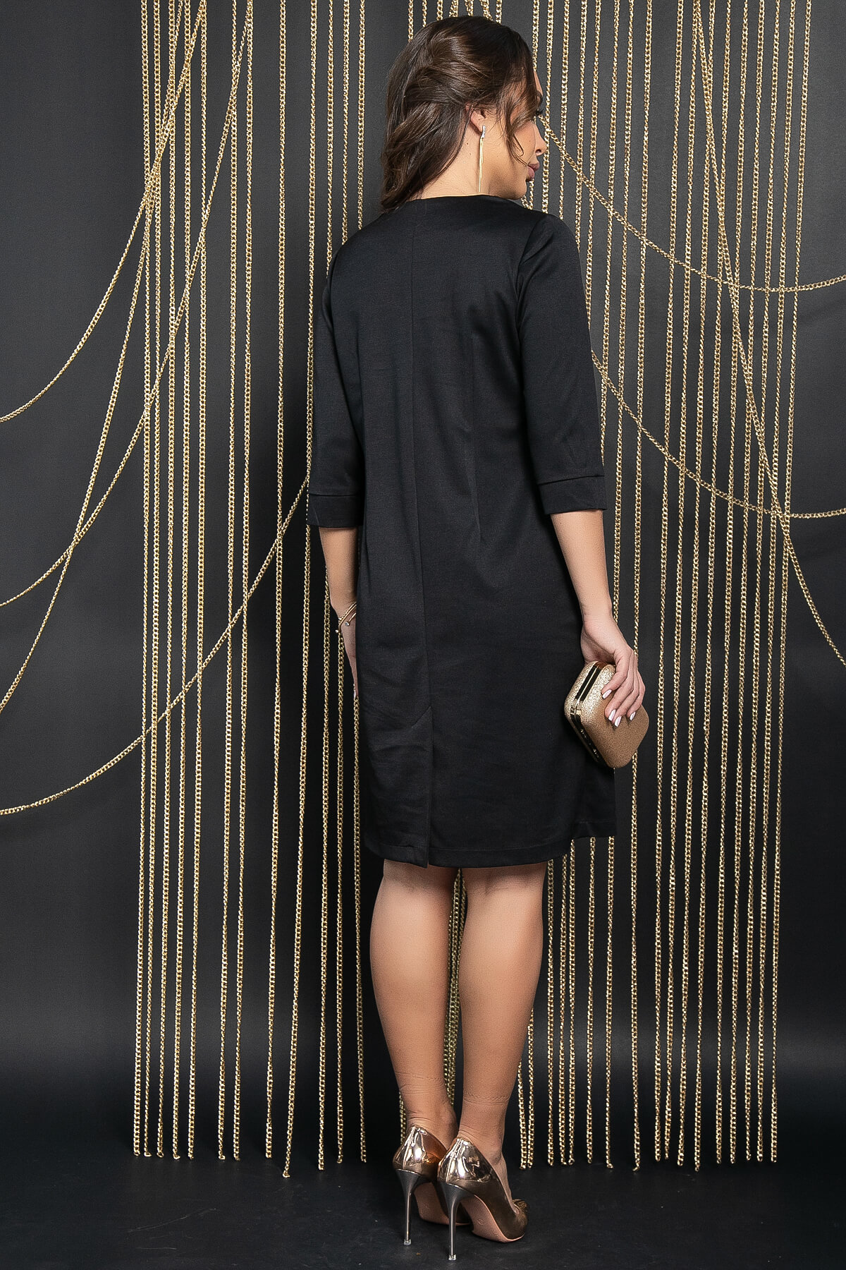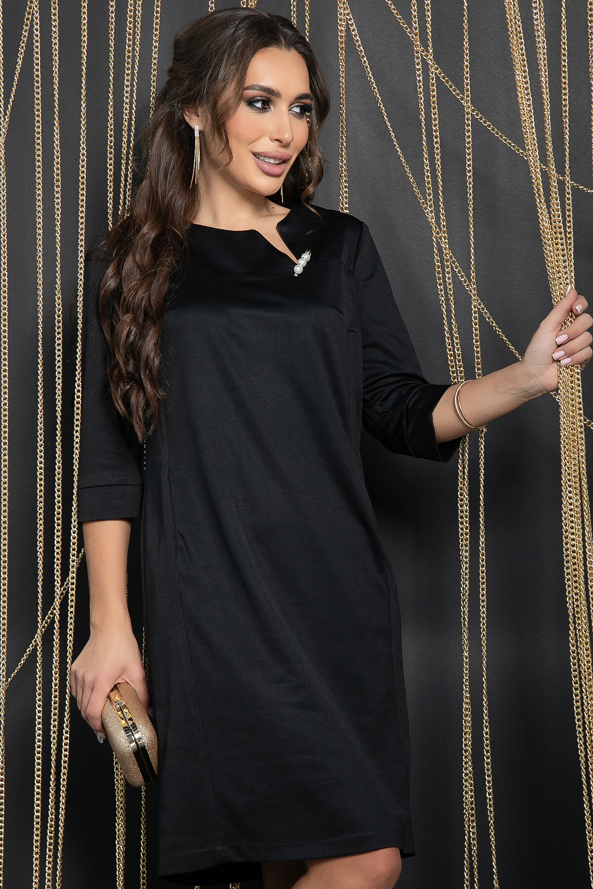 Чёрное платье приталенного силуэта — станет незаменимым элементом вашего гардероба, идеально подходящим как для важных встреч, так и для вечерних мероприятий. Фигурный вырез горловины добавляют изюминку и создают интересный визуальный акцент, подчеркивая вашу женственность. Особое внимание привлекает элегантная брошь с бусинами, которая завершает наряд и придаёт ему уникальность. С её помощью вы сможете добавить личный штрих в свой образ, подчеркивая свою индивидуальность.