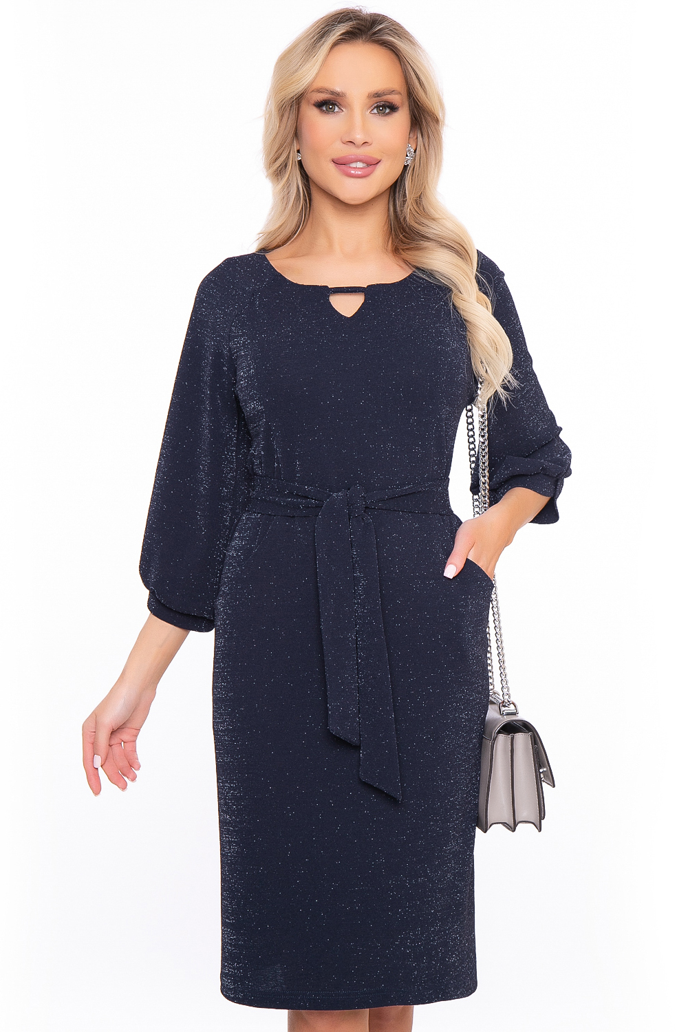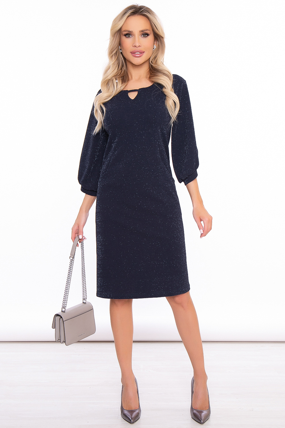 Эффектное трикотажное платье полуприталенного силуэта с люрексной нитью.