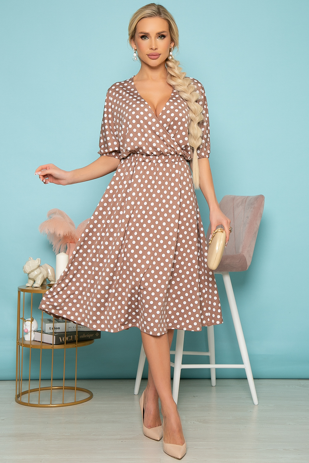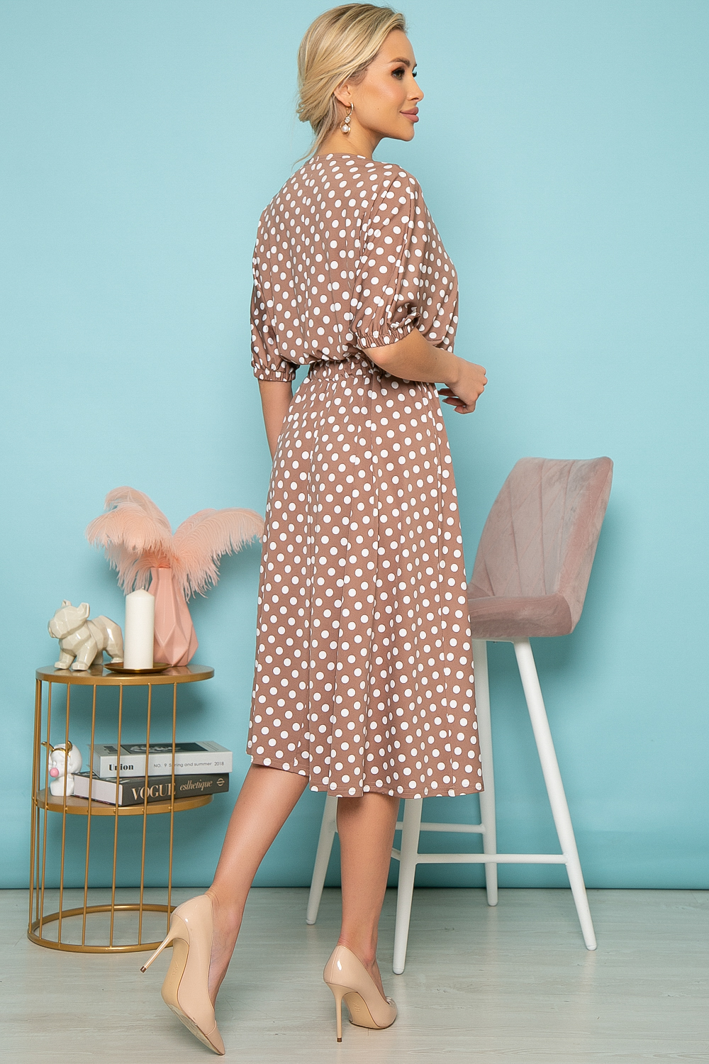 Невероятное платье, собравшее в себе все элементы женственного кроя: длина миди, струящаяся ткань, горошек... Всё это позволит создать неповторимый образ! Рукав цельнокроенный, короткий, низ на резинке. Пройма - "Летучая мышь". Талия на широкой резинке.