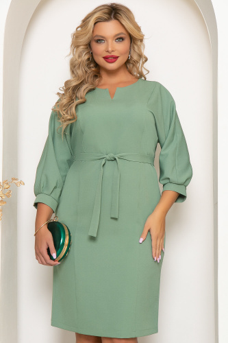 Элегантное платье на каждый день в красивом оливковом оттенке. Фигурный вырез горловины создаёт красивый акцент на зоне декольте. Комфортный рукав, сзади по спинке разрез. В комплект входит пояс из основной ткани.