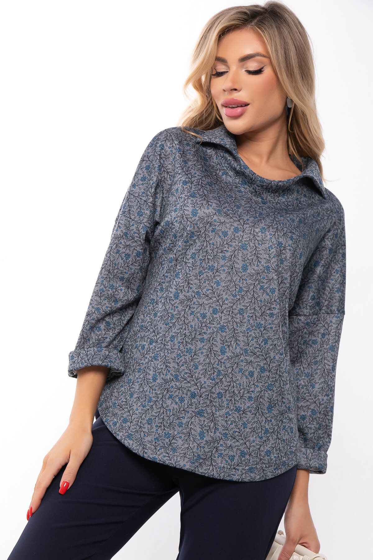 Блуза "Казимира" (синяя/меланж) Б7472