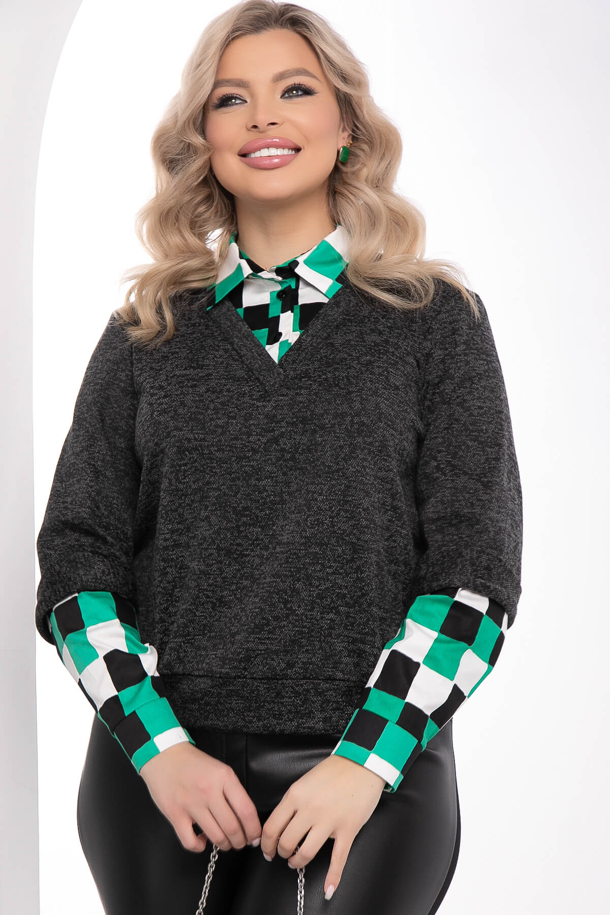 Эффектный джемпер из трикотажа сделает ваш образ одновременно деловым и контрастным. Он смотрится оригинально благодаря эффекту многослойности. Визуально выглядит как джемпер с V-образным вырезом и яркая контрастная рубашка. Добавляйте образу аксессуары и чувствуйте себя на стиле!