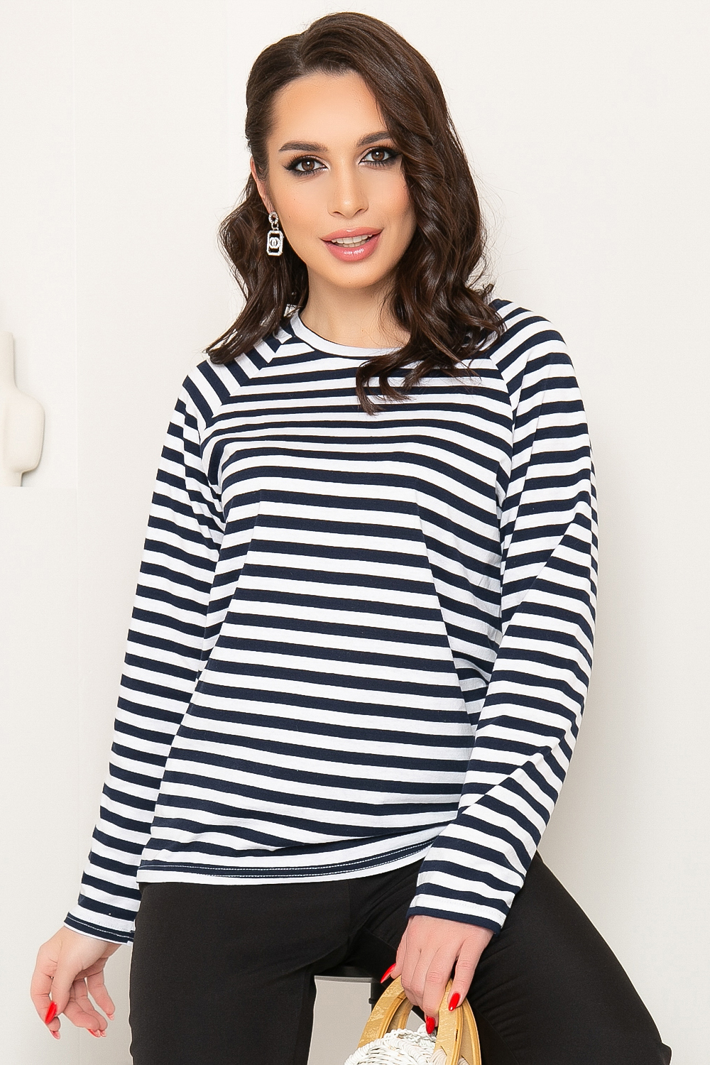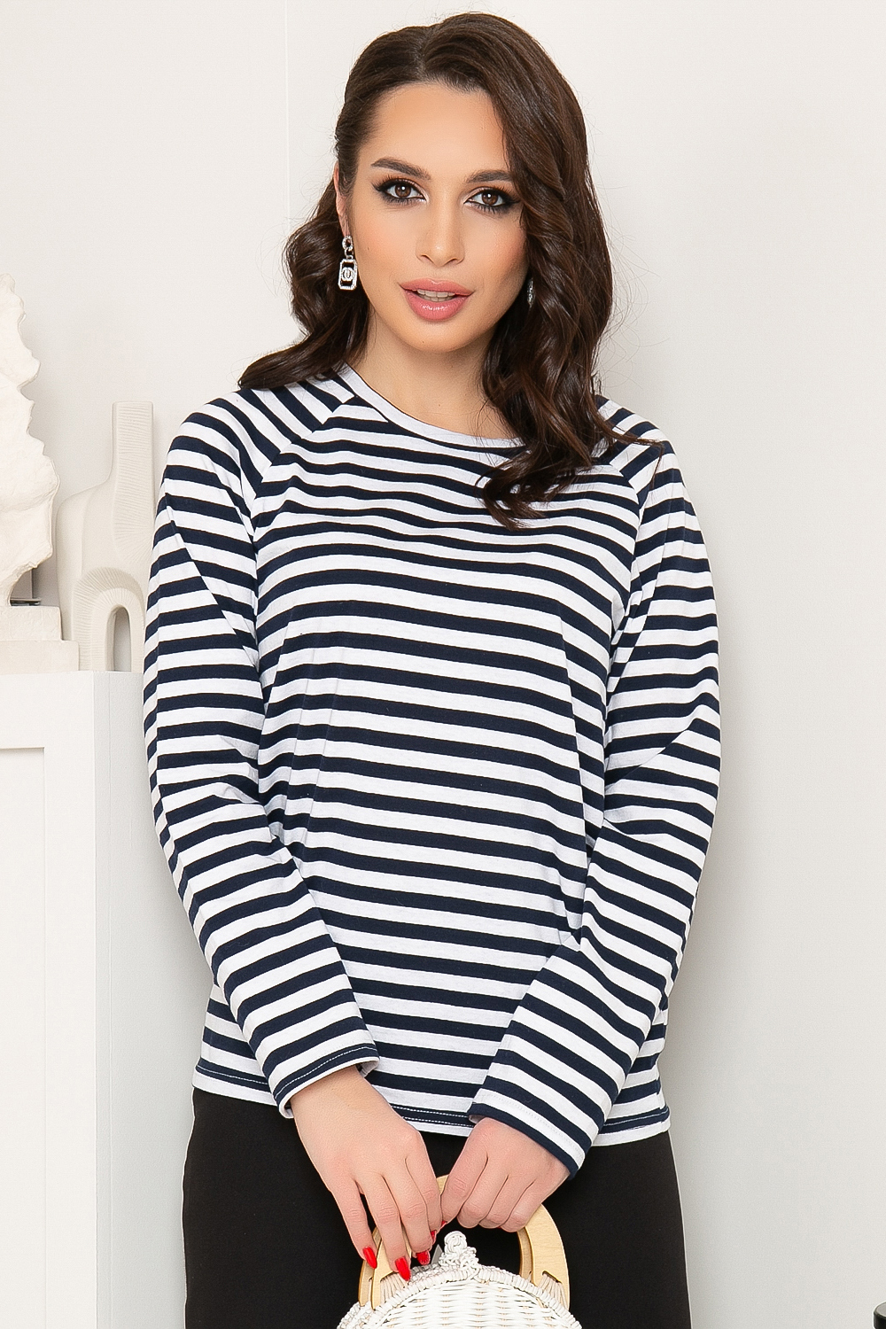 Лонгслив в морской тематике свободного кроя это настоящий must have этого сезона. Сочетайте с брюками или джинсами, а также дополняйте яркими аксессуарами: шарф, ремень, сумка.