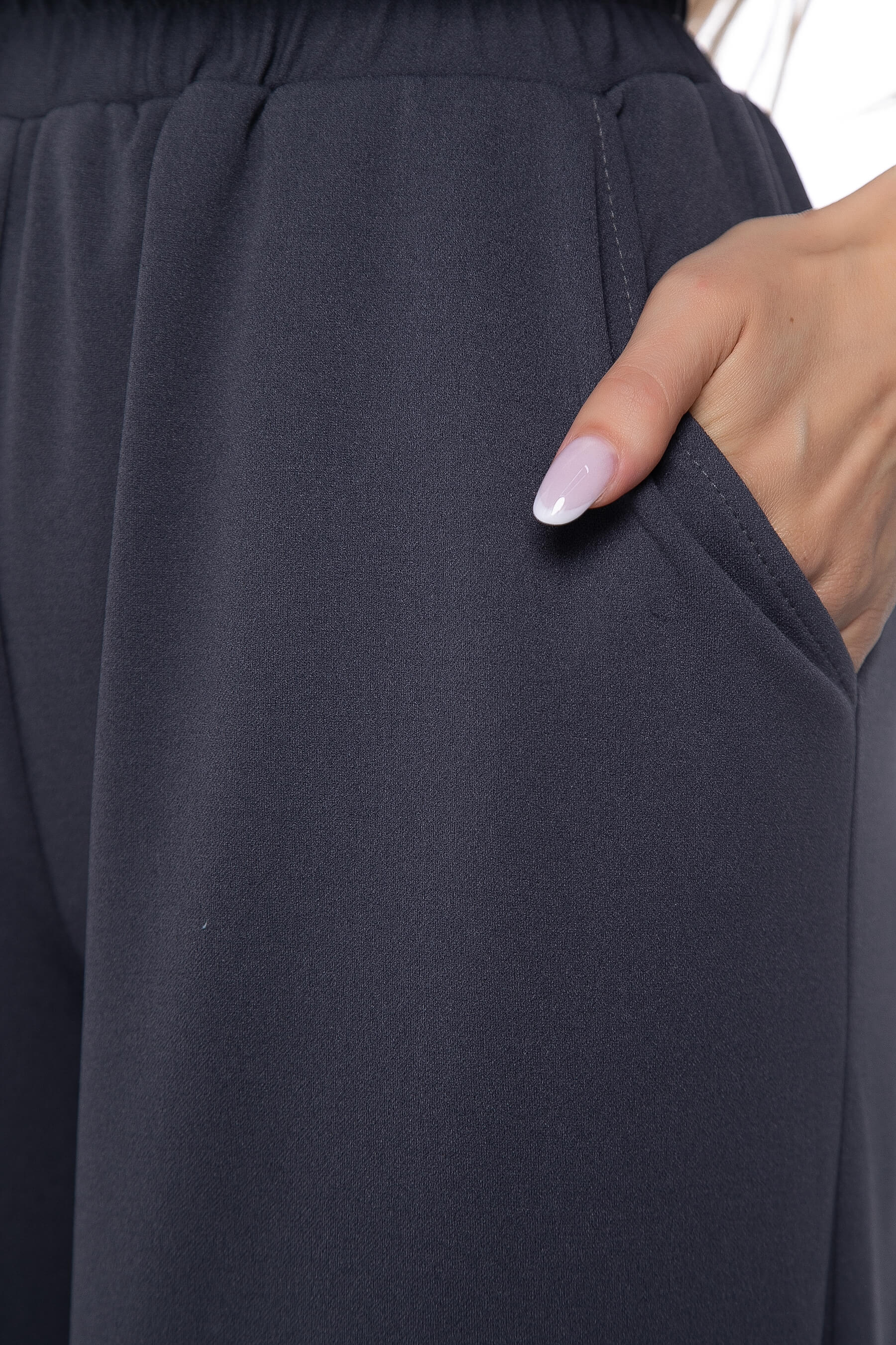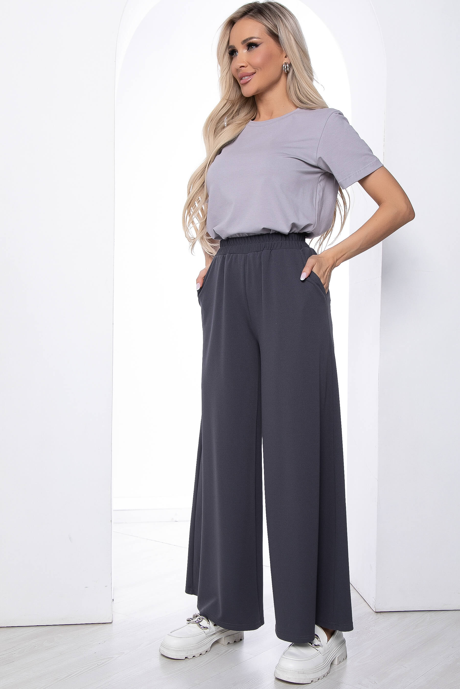 Практичные и комфортные брюки из трикотажа свободного кроя. Модель выполнена в классическом сером оттенке, который отлично комбинируются с вашим гардеробом. Есть карманы. Такой вариант брюк прекрасно подойдёт для работы в офисе или просто на каждый день. Брюки на притачном поясе, на широкой резинке.