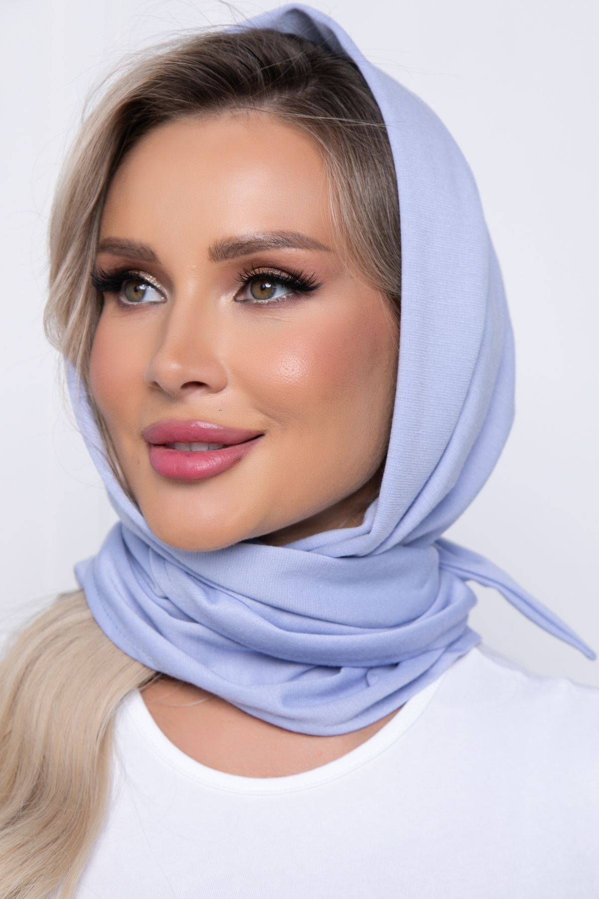 Косынка из плотного трикотажа с отворотом поможет создать невероятно стильный образ. Она имеет правильный крой с удлиненными краями для завязывания как спереди, так и сзади, С этим аксессуаром можно создавать огромное количество стильных образов и использовать его в разных стилях. А добавление таких деталей, как очки, яркая помада или стильная сумка дадут еще больше возможностей для воплощения ваших идей.