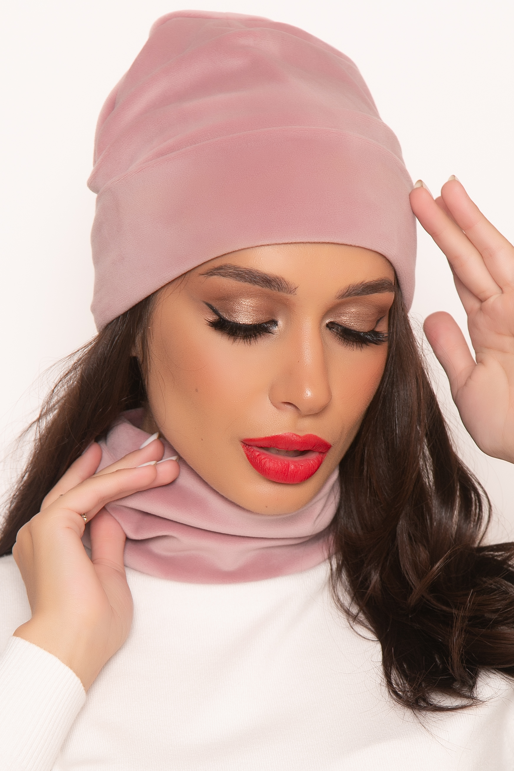 Стильная шапка из велюра согреет Вас в прохладный период. Шапка плотно облегает голову, не сдавливая её.