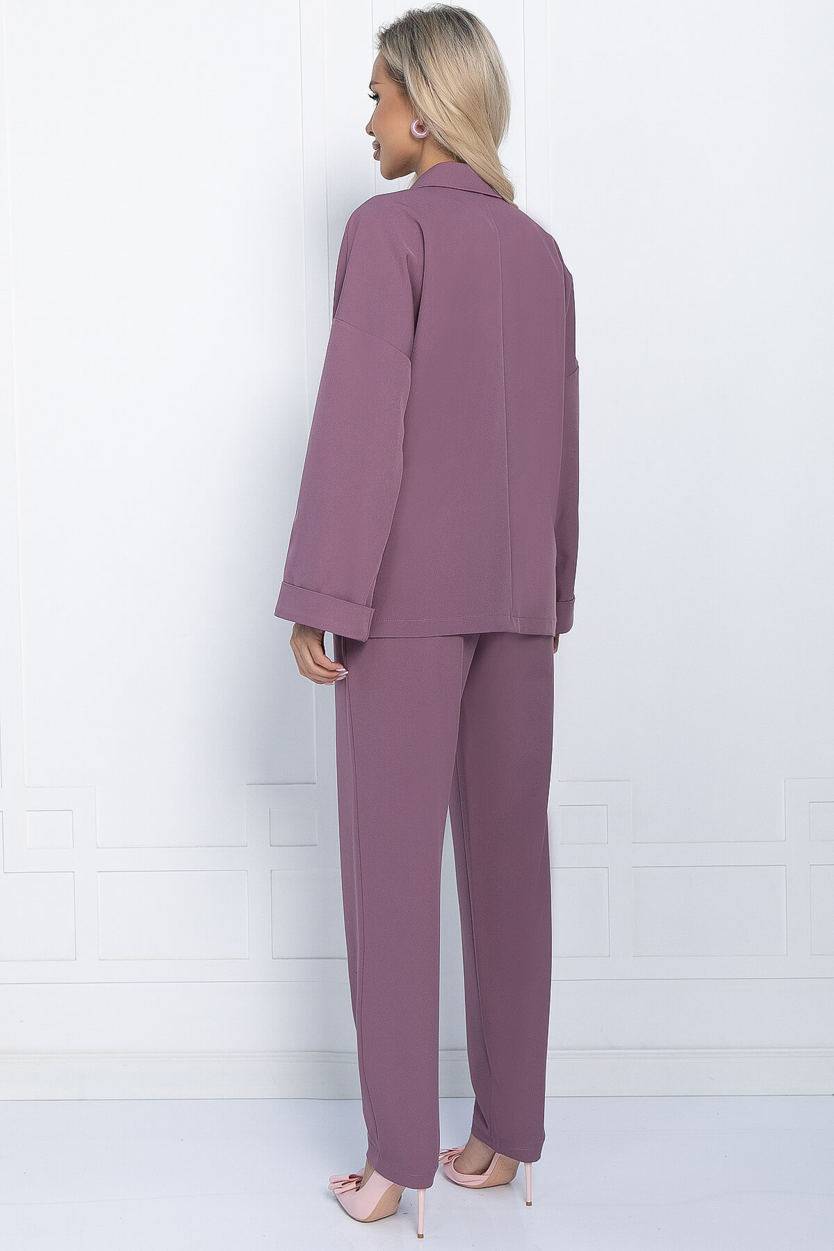 Брючный костюм в розовом цвете - один из лучших вариантов разнообразить гардероб! В нём вы будете себя чувствовать уверенно и комфортно. Можно носить как совместно, так и раздельно. Этот брючный костюм подойдет для работы в офисе, деловых встреч и мероприятий. Жакет свободного кроя на пуговицах, рукав спущенный на манжете, разрезы по боковым швам. Брюки полуприлегающего силуэта на резинке, есть карманы.