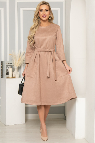 Платье из экозамши станет прекрасным вариантом на каждый день. Наряд из замши приятен к телу и наощупь. Платья из замшевой ткани можно носить в любое время года, они пользуются спросом среди женщин всех возрастов. Оттенок платья позволяет создавать множество интересных цветовых сочетаний. Вырез горловины - округлый. Втачной рукав три четверти. В комплект входит пояс из основной ткани. Платье без подкладки.