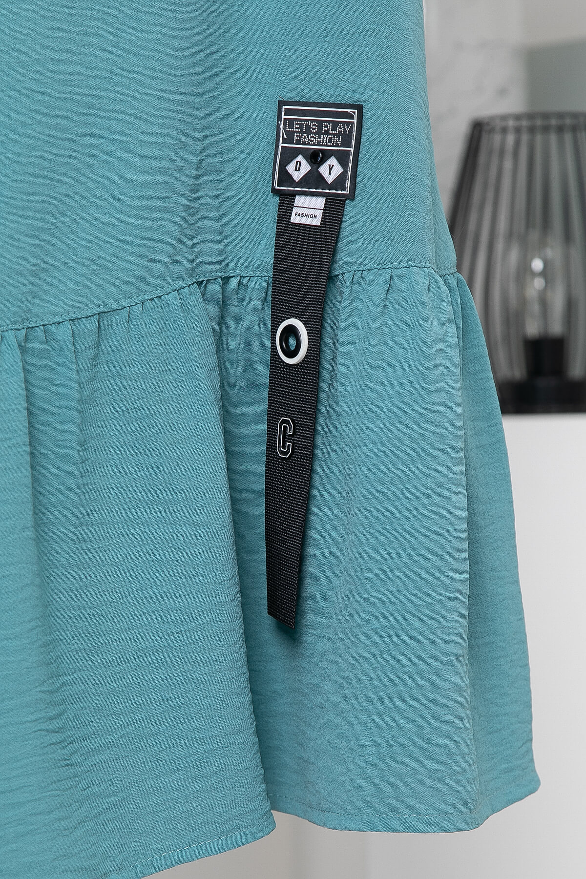 Летнее платье из легкой ткани сделает ваш образ воздушным и очень романтичным. Изделие отлично смотрится с любыми видами украшений. Рукав укороченный, украшен манжетой. По низу изделия рюша.