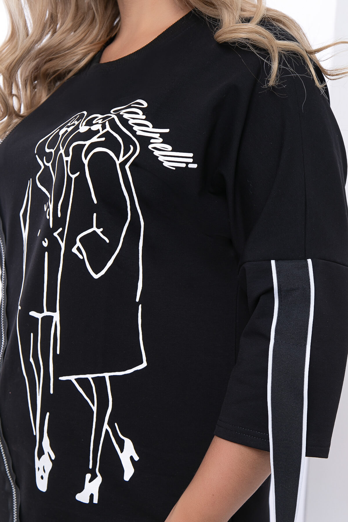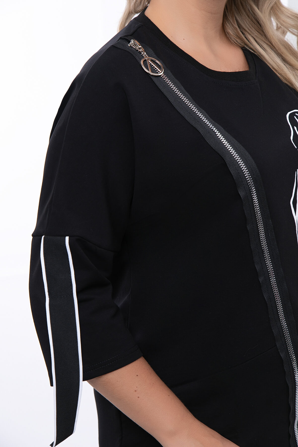 Трикотаж — это пожалуй самый распространенный материал для платьев, туник и другой повседневной одежды. Это и не удивительно, ведь он очень комфортный, приятный к телу, достаточно теплый. Именно поэтому модницы выбирают платья из трикотажа для зимы и холодной осени. Рукав три четверти. Изделие украшает декоративная молния по переду.