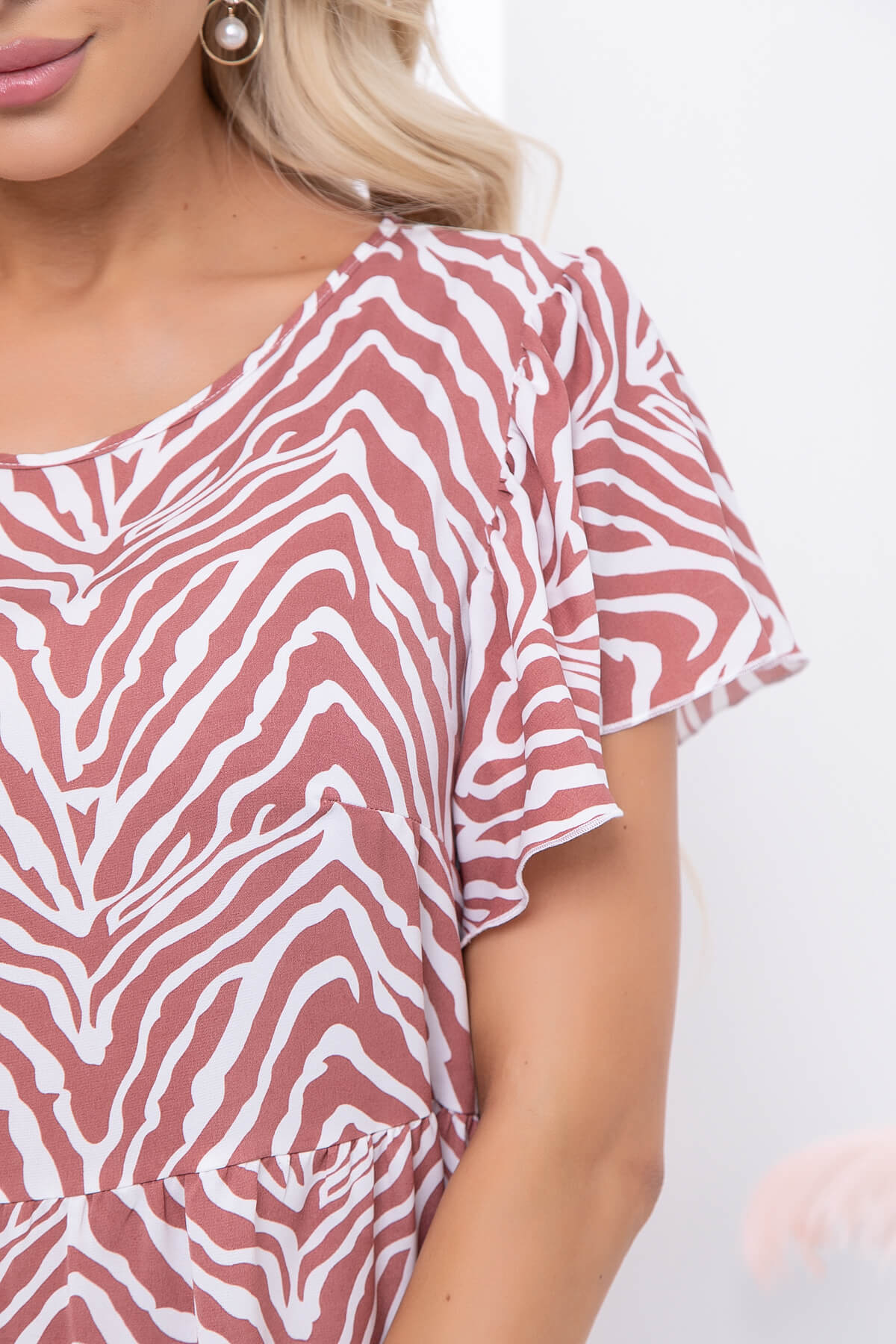 Платье свободного кроя изумительно смотрится как с каблучком, так и с кедами! Юбка с двумя воланом по низу добавляет романтичности и воздушности образу. Рукав скроен по типу "крылышко".