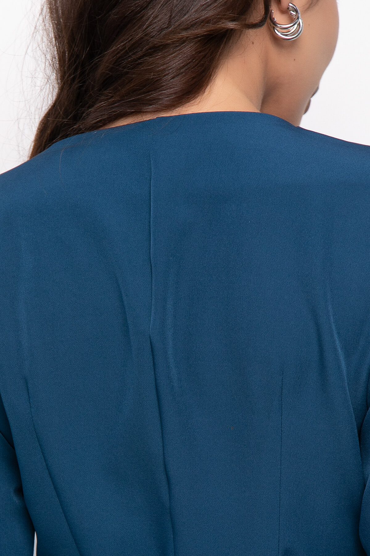 Платье на запах - это тот наряд, с которым можно создавать стильные образы в любом возрасте. Данная модель прекрасно подойдёт для создания офисных аутфитов. Цвет морской волны удачно сочетается и с холодными, и с теплыми палитрами, поэтому его можно назвать универсальным.