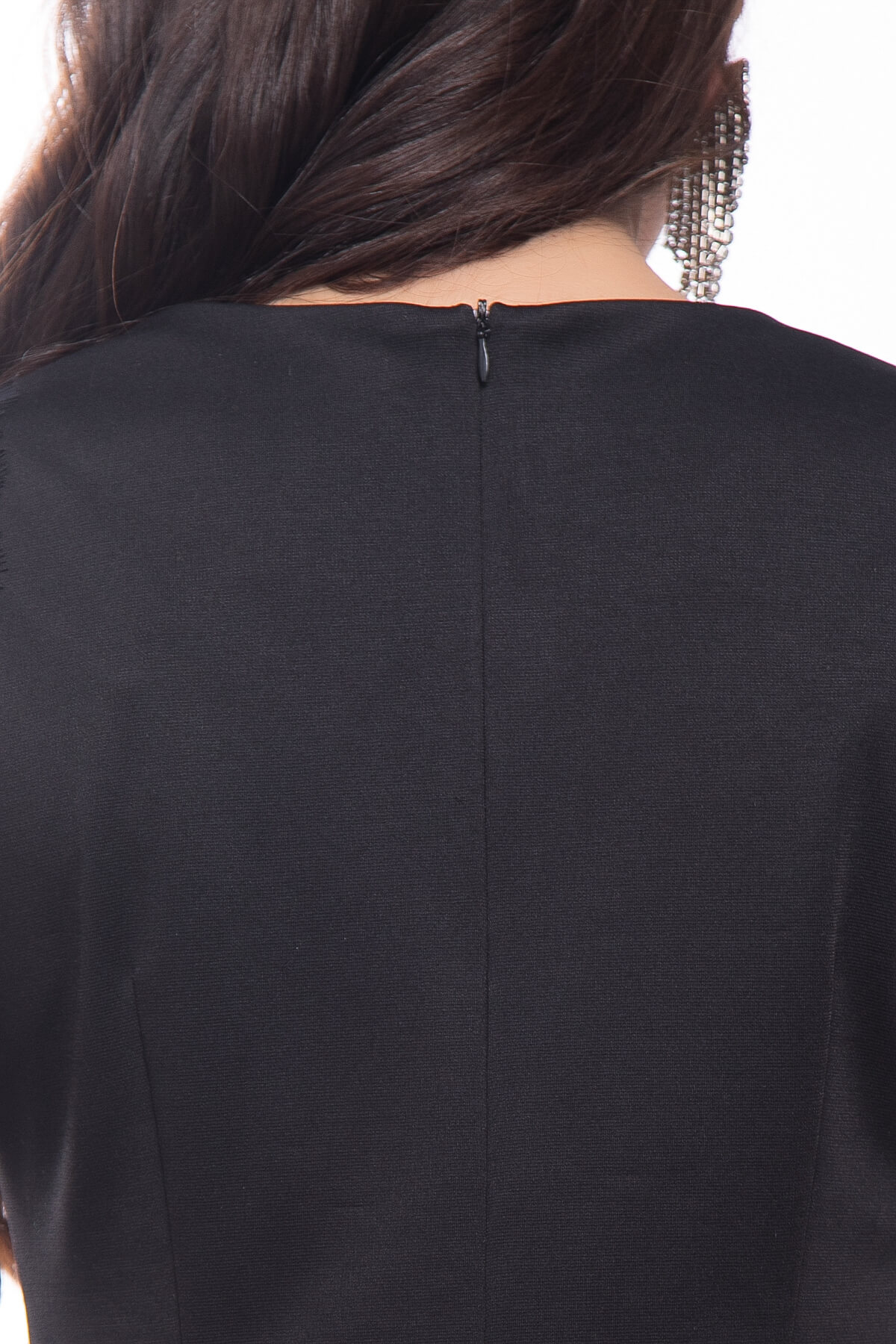 Элегантное платье подходит для создания стильного вечернего образа. Изделие украшает акцентный вырез с декоративной цепью черного цвета. Рукав из кружева придает особы шарм. По переду платья деликатный разрез по ножке.