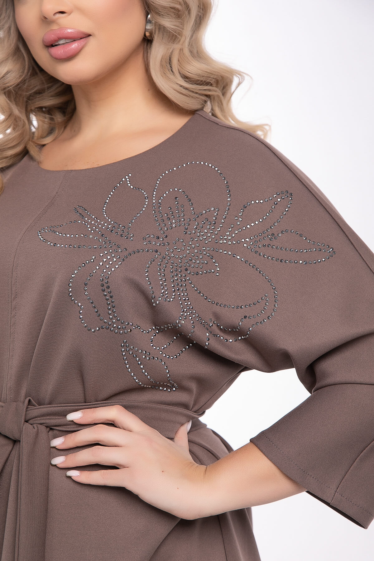 Платье из трикотажа, которое создано, чтобы подчеркнуть вашу женственность и создать легкий и воздушный образ. Элегантность и комфорт в одном флаконе! Изделие полуприлегающего силуэта с игривым разрезом по переду. Рукав широкий, скроенный по типу "летучая мышь". Изделие украшает флористический принт из страз. В комплект входить пояс из основной ткани, который идеально подчеркивает преимущества фигуры.