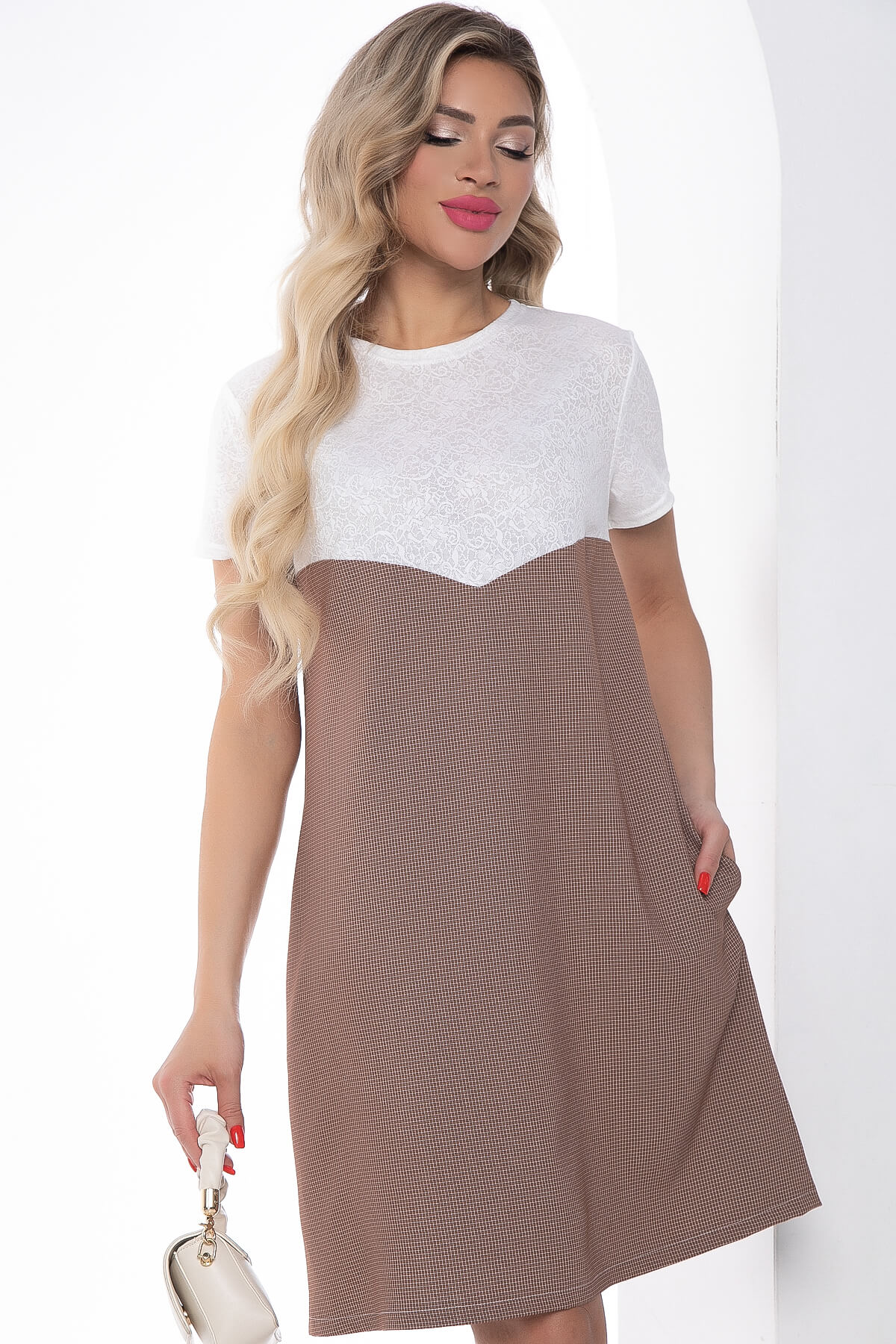 Платье "Игра на контрасте" НЬЮ (коричневое) П8684