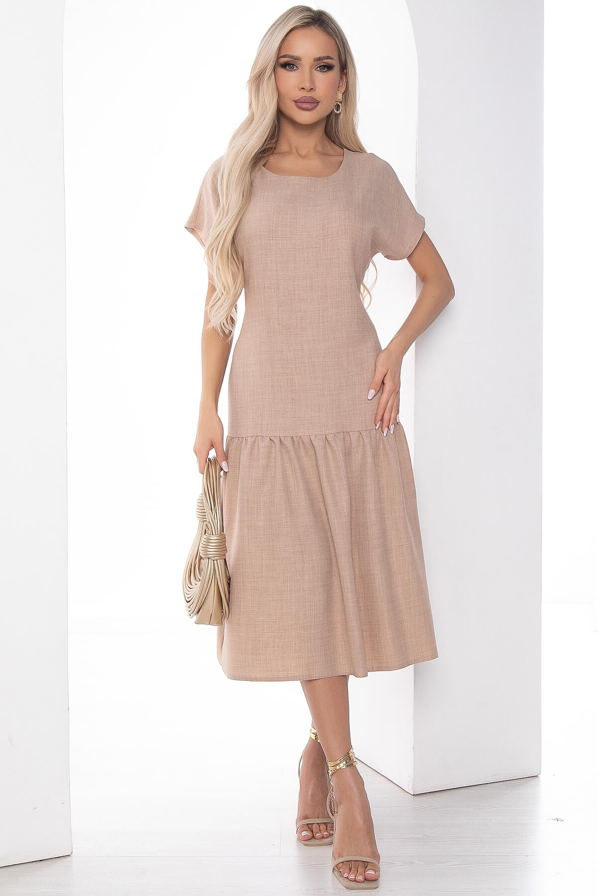 Платье из приятной ткани в бежевом оттенке с бантом сзади создаёт интересный акцент на очень соблазнительной части женского тела – спине. Бант преобразит любое платье, добавит романтичности, нежности и женственности. Отличный вариант для повседневных образов, также можно смело надеть на свидание. Пояс вшит в боковые швы изделия, его можно завязать по передней части либо по задней части изделия. В комплекте идёт брошь.