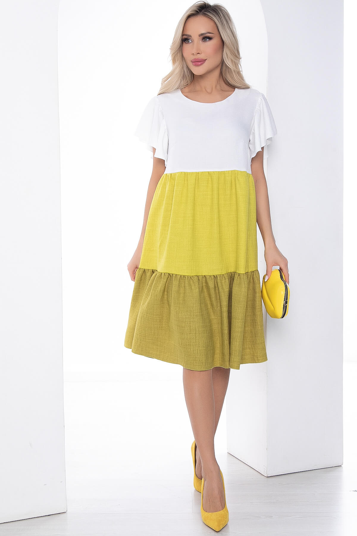 Платье свободного кроя изумительно смотрится как с каблучком, так и с кедами! Юбка с двумя воланом по низу добавляет романтичности и воздушности образу. Рукав скроен по типу "крылышко".