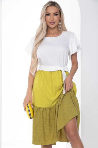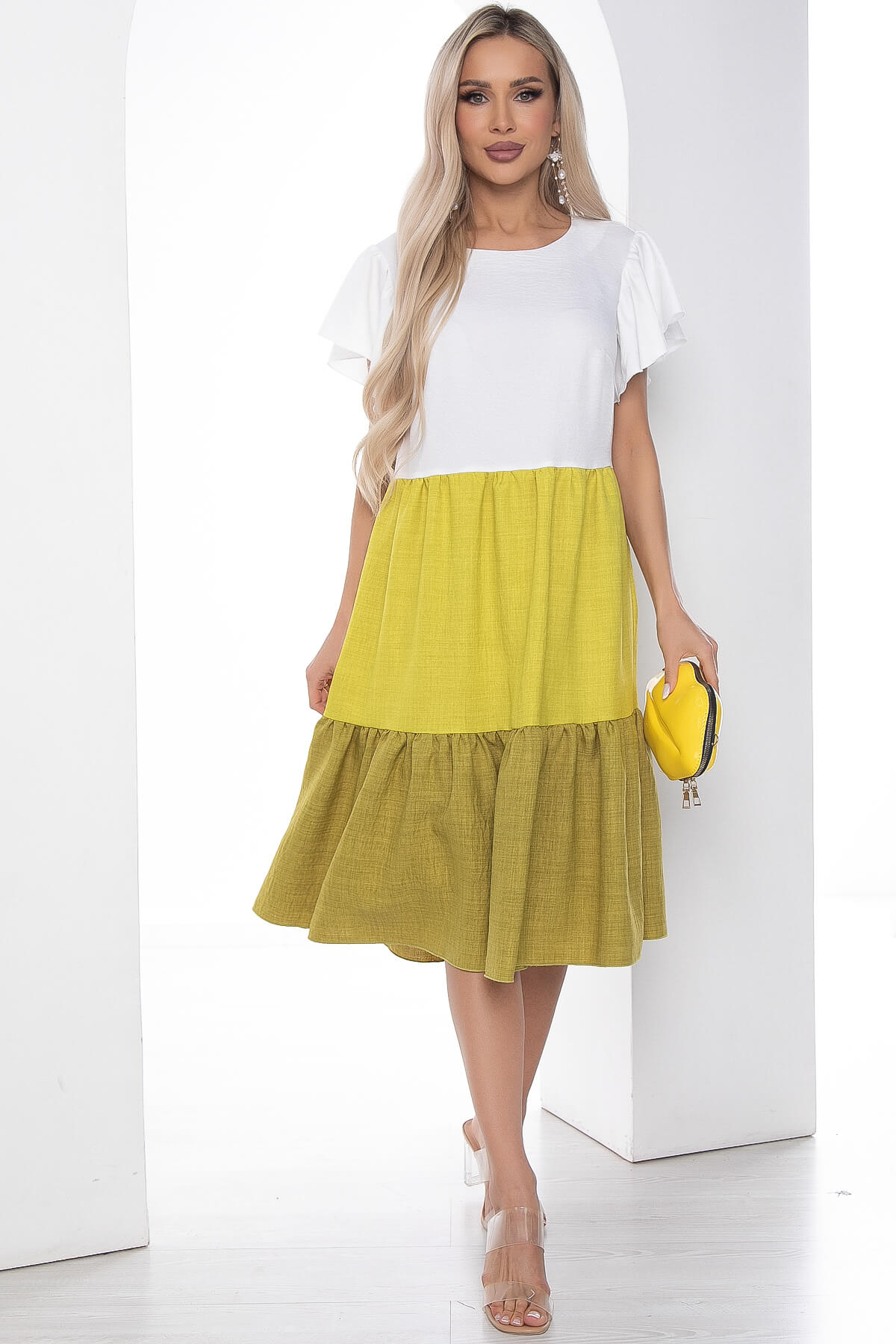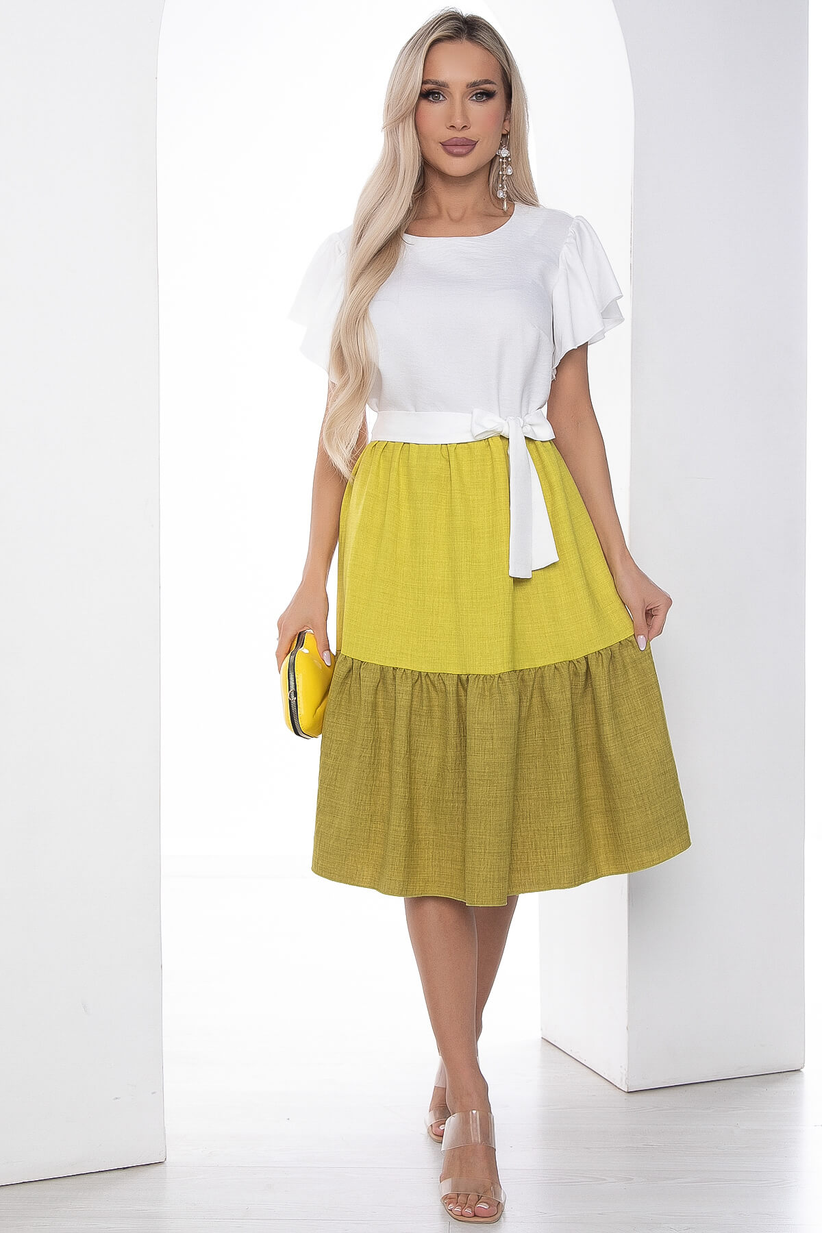 Платье свободного кроя изумительно смотрится как с каблучком, так и с кедами! Юбка с двумя воланом по низу добавляет романтичности и воздушности образу. Рукав скроен по типу "крылышко". В комплект входит пояс из основной ткани.