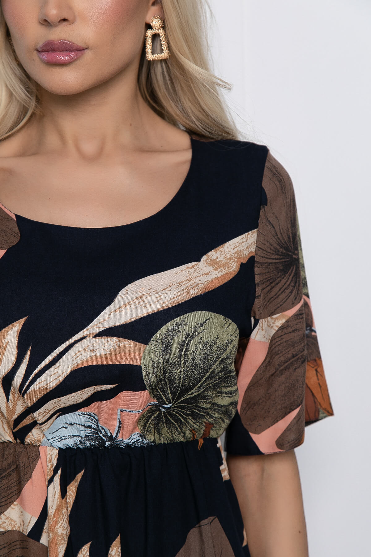 Удобный, свободный крой подарит свободу движений и комфорт! Сочетается с туфлями, босоножками и кроссовками. Платье под грудью на резинке.