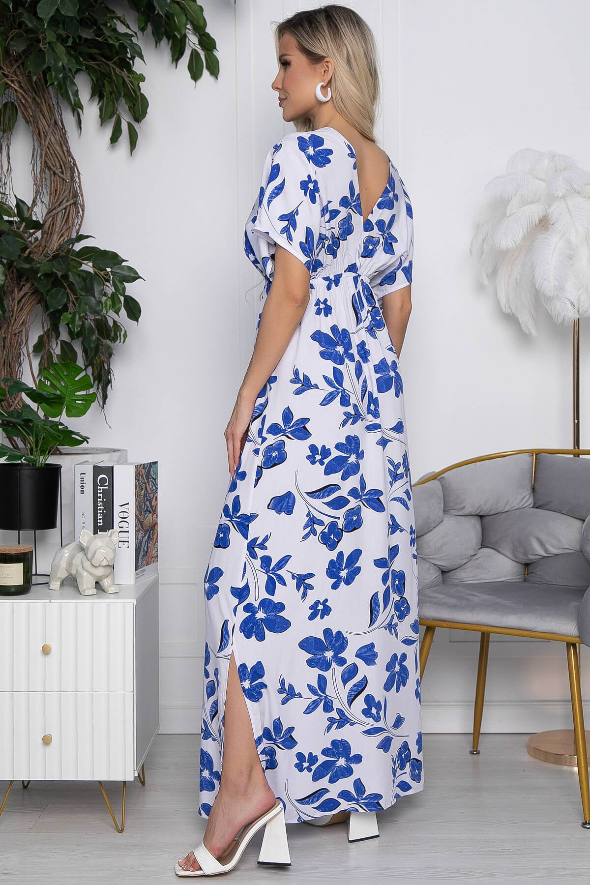 Летнее платье макси в греческом стиле. Перед очарованием этого платья не сможет устоять даже самый равнодушный ценитель красоты. Свободный крой платья не будет сковывать движений и позволит чувствовать себя максимально комфортно. Достоинства фигуры подчеркивает V-образный вырез с имитацией запаха по переду и по спинке. Талия на мягкой резинке.
