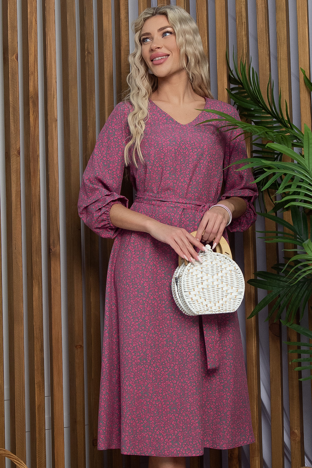 Элегантное платье А-силуэта станет идеальным дополнением вашего летнего гардероба. V-образный вырез горловины изящно подчеркивает зону декольте и ключицы, добавляя образу женственности и утонченности. Втачные рукава с двумя складками создают интересный визуальный акцент, а резинка по низу рукава обеспечивает комфорт. В комплект входит пояс из основной ткани, который позволяет подчеркнуть талию и добавить завершенности вашему образу.