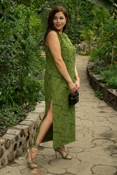 Платье полуприлегающего силуэта без рукавов — это превосходный выбор для тех, кто ценит стиль и элегантность. Потайная молния на спинке обеспечивает удобство в надевании, а горловина и пройма обработаны обтачкой, что придает платью аккуратный и завершенный вид. Разрезы по бокам добавляют нотку изящества и свободу движений.