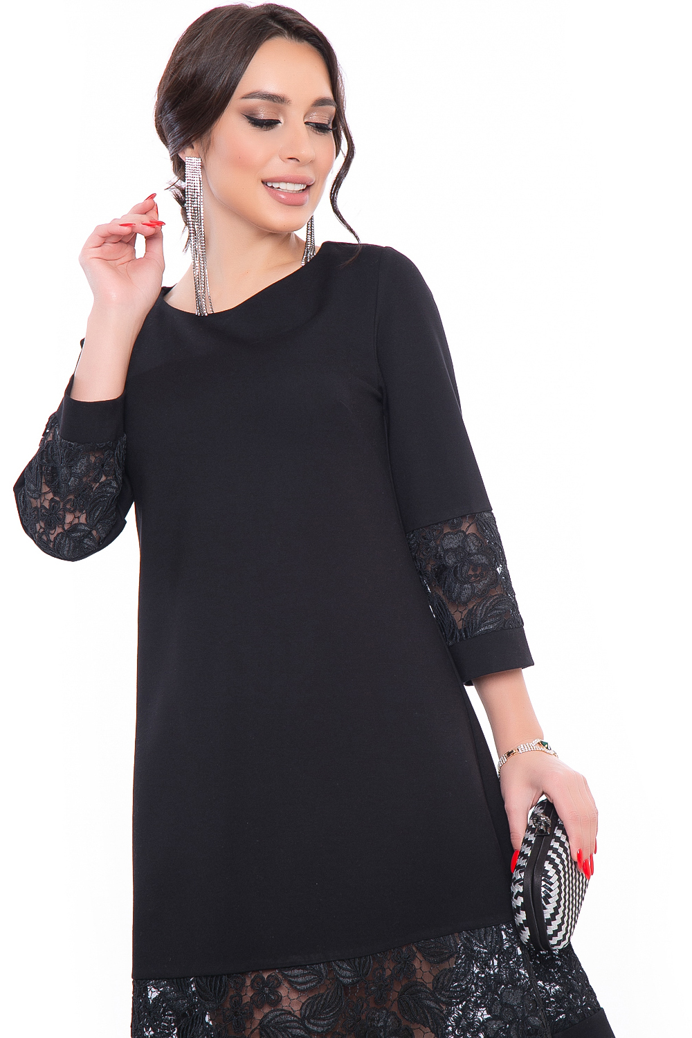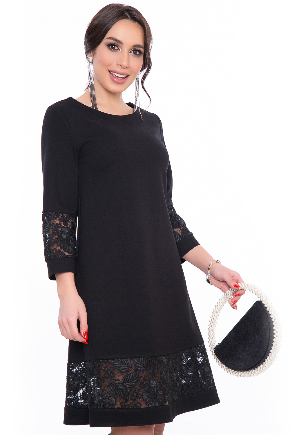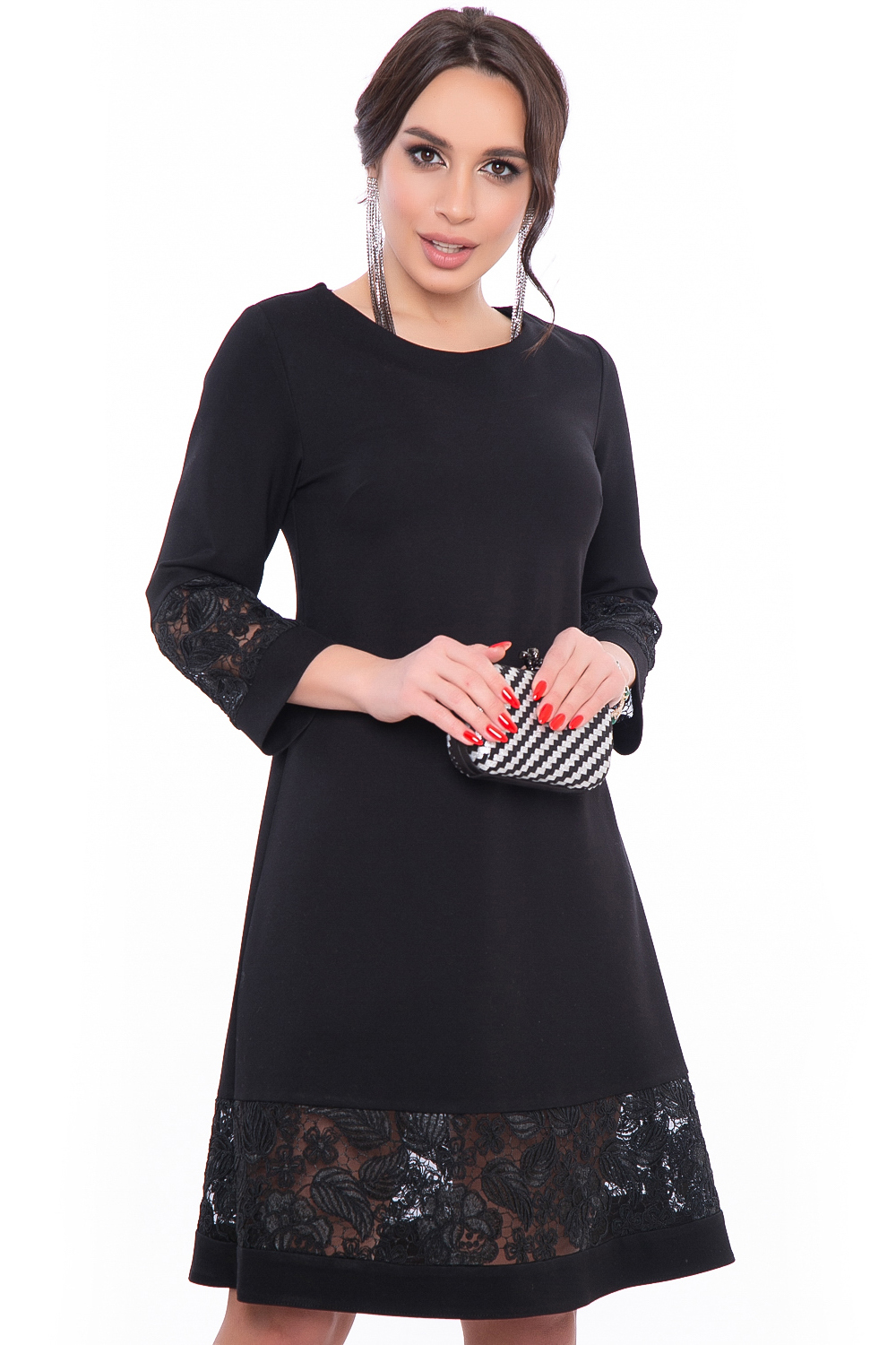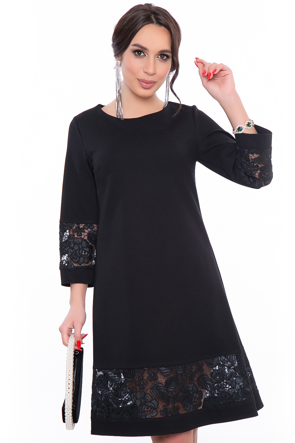 Утончённое женственное платье со вставками из гипюра в классическом чёрном оттенке.