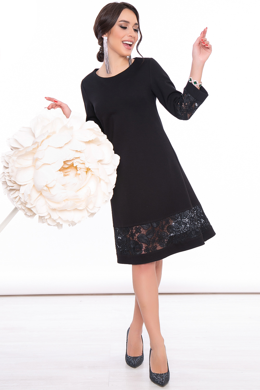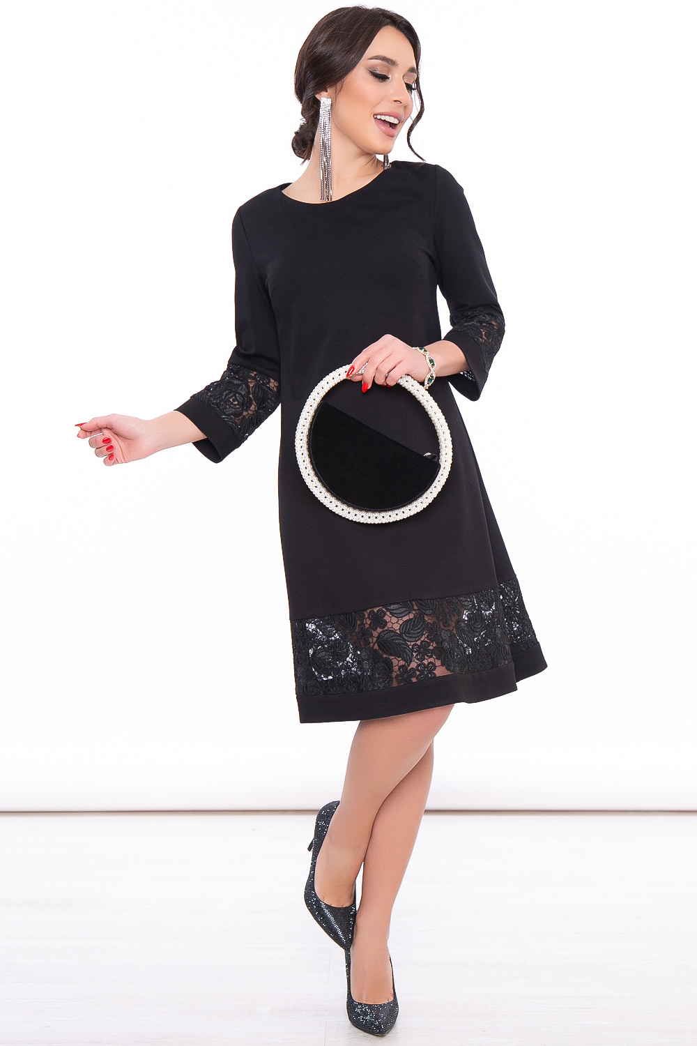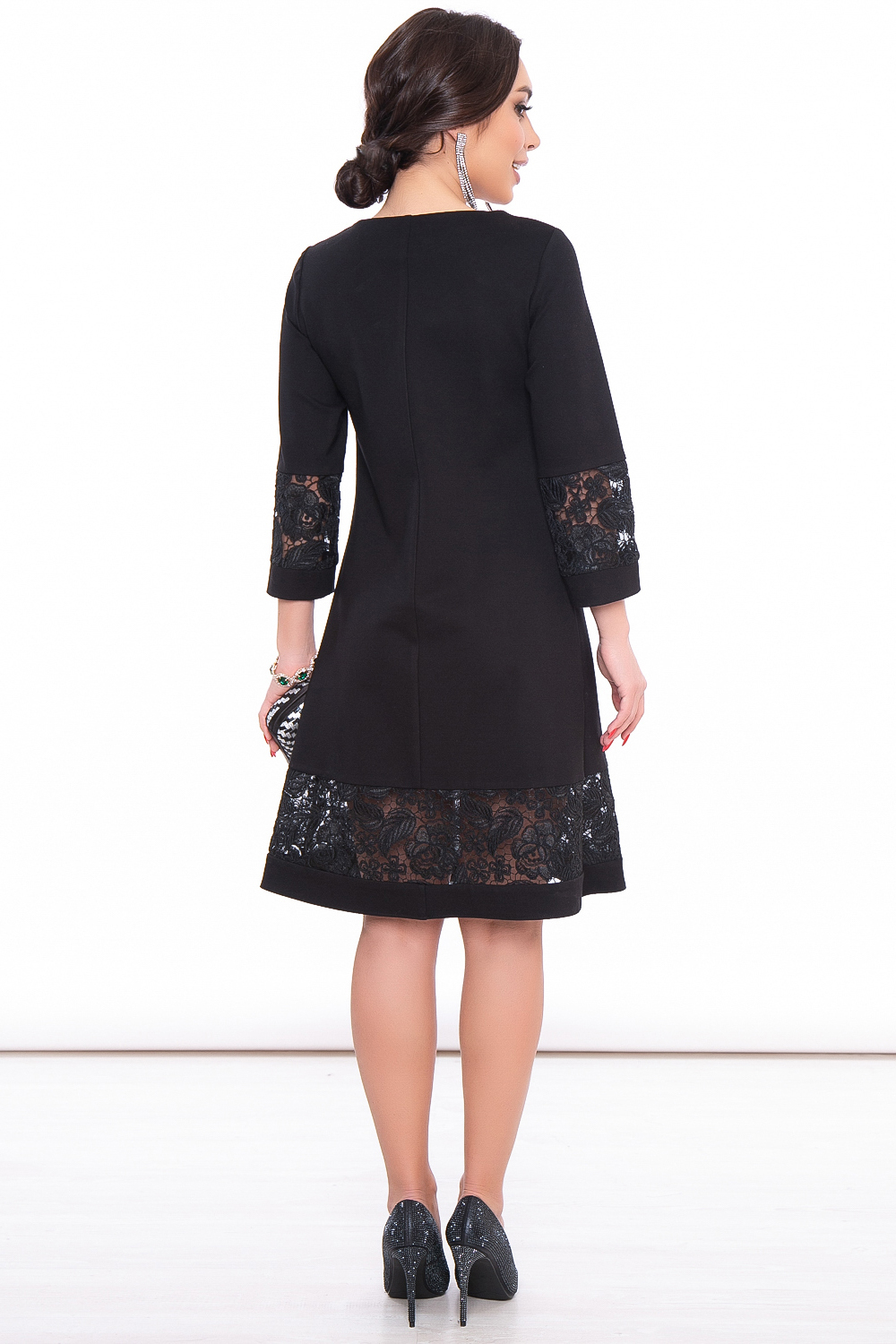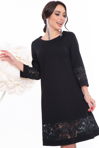 Утончённое женственное платье со вставками из гипюра в классическом чёрном оттенке.