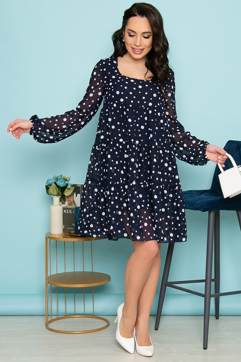 - Цвет: синий, принт: горошки;
