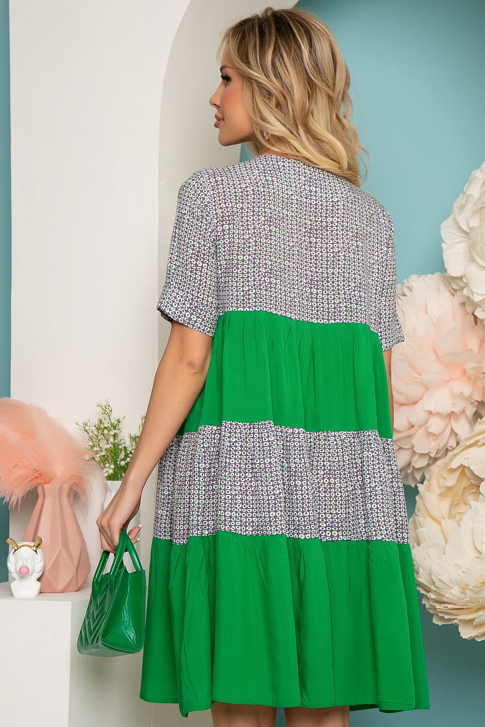 Платье "Милее всех" (грин / грей) П3625