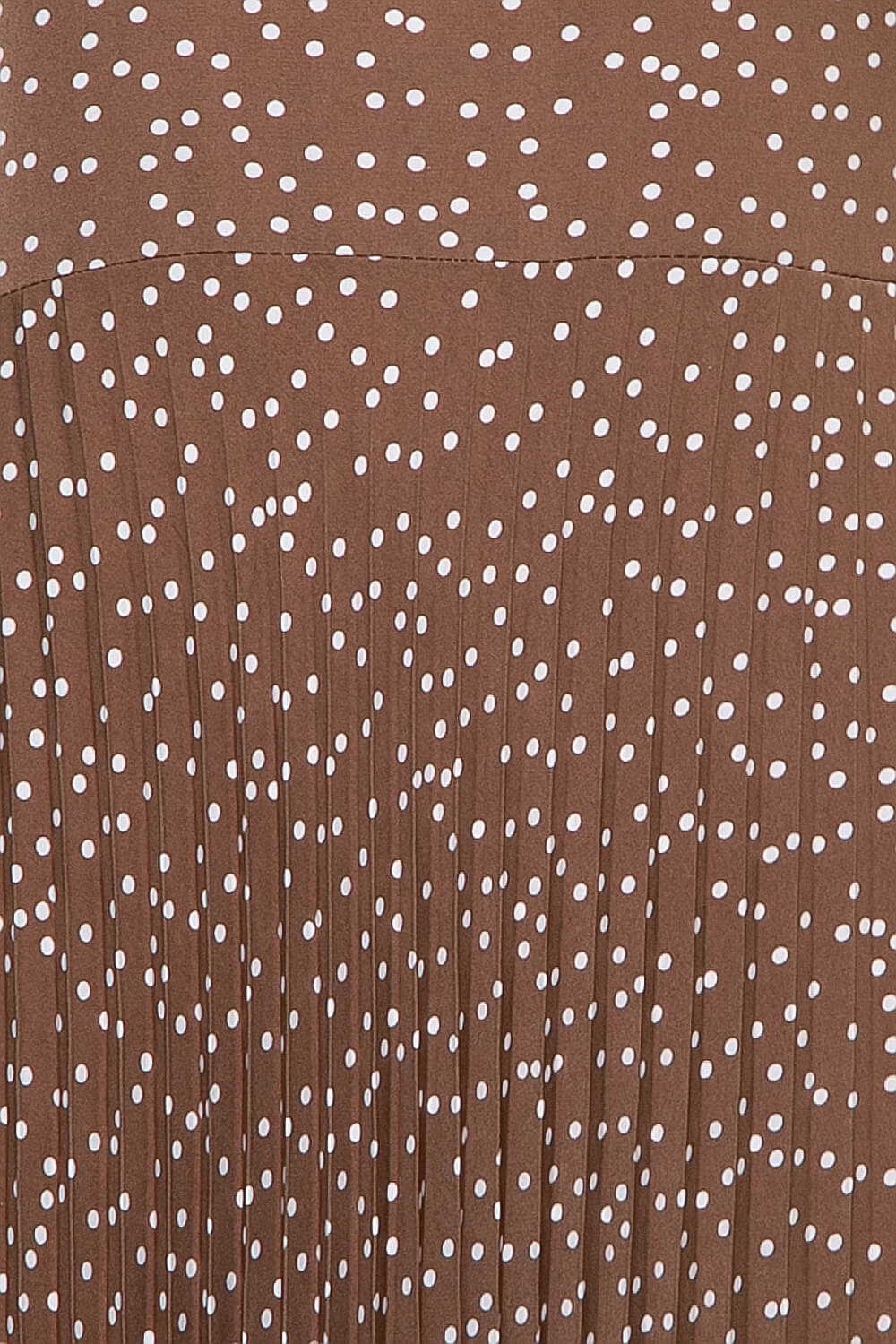 Долгожданный ХИТ продаж в новом исполнении! Летящее, манящее, женственное платье для самых утонченных натур. Плиссированная юбка длины миди, нежный оттенок, принт в мелкий горошек - залог успешно созданного романтического образа. Идеальный вариант для весеннего настроения.Талия отрезная, округлый вырез горловины. Рукав втачной, 7/8, низ на резинке. В комплекте поясок из основной ткани с пряжкой. Платье без подкладки, в боковом шве потайная молния.